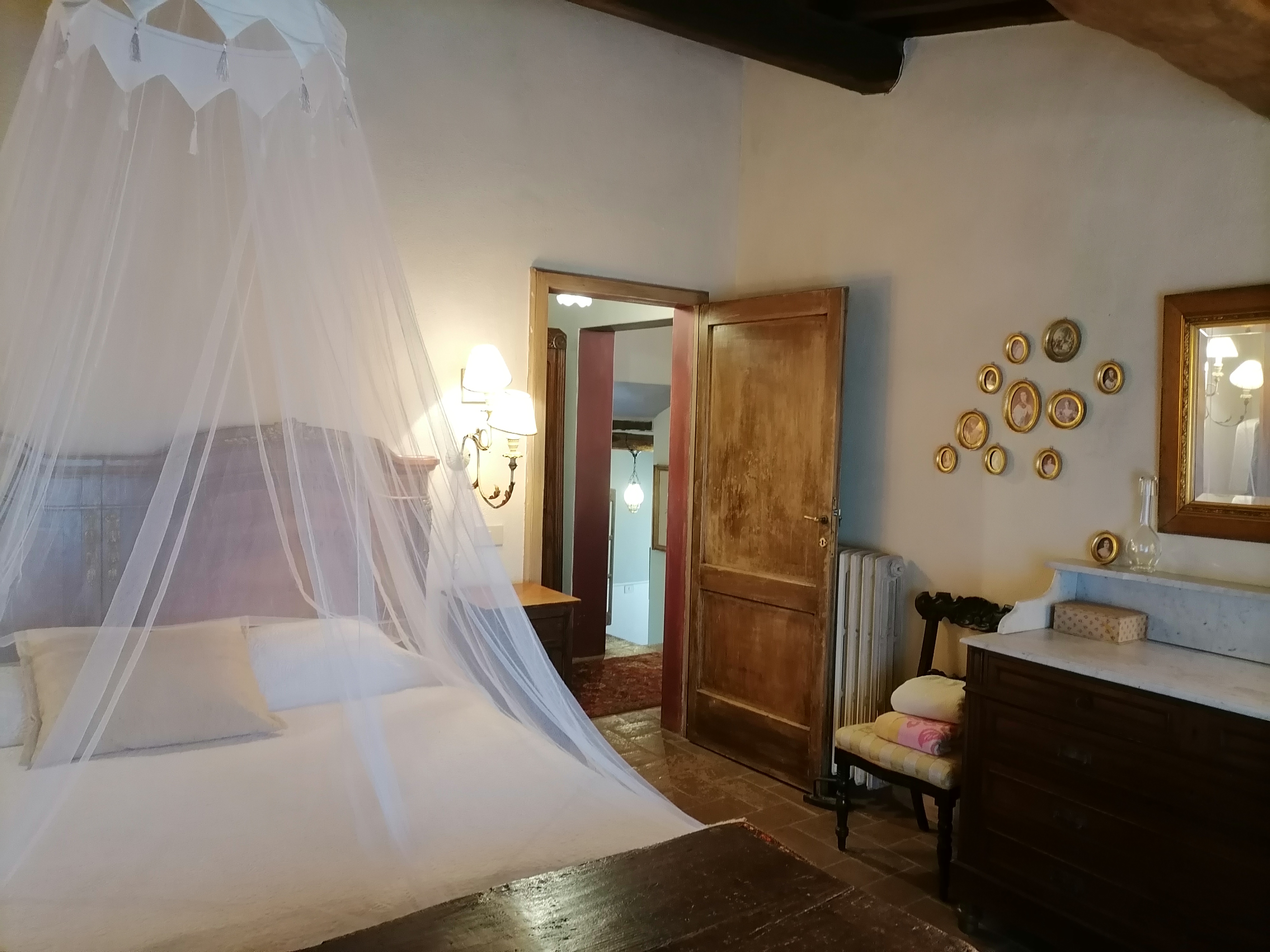 Ulivo is the spacious (200m2) and charming portion of our historic farmhouse, perfect for those seeking comfort and authenticity in the heart of Chianti Classico. Named after the ancient olive trees that surround the property, this independent accommodation offers generous spaces, historic details, and breathtaking views over vineyards and olive groves.